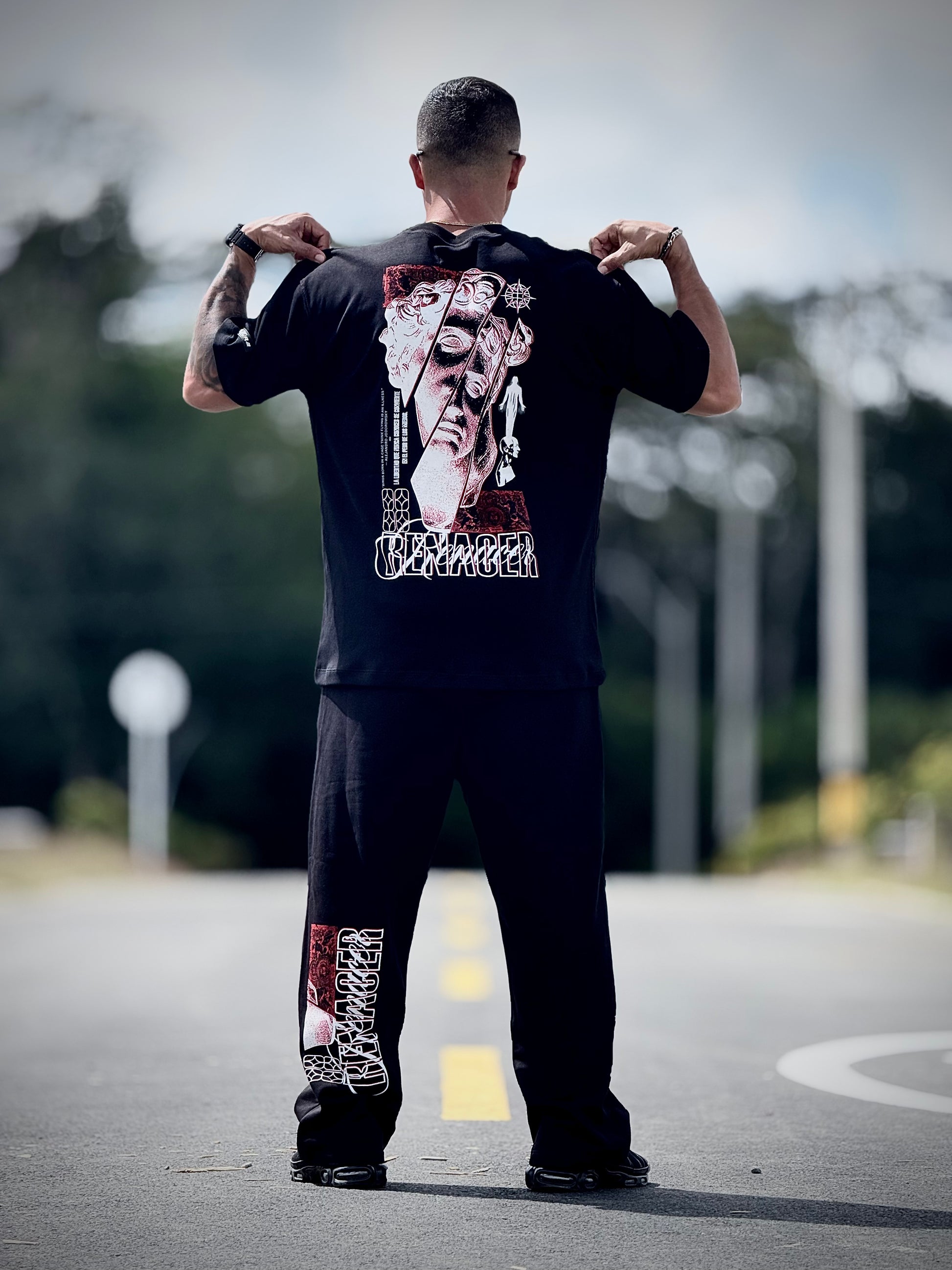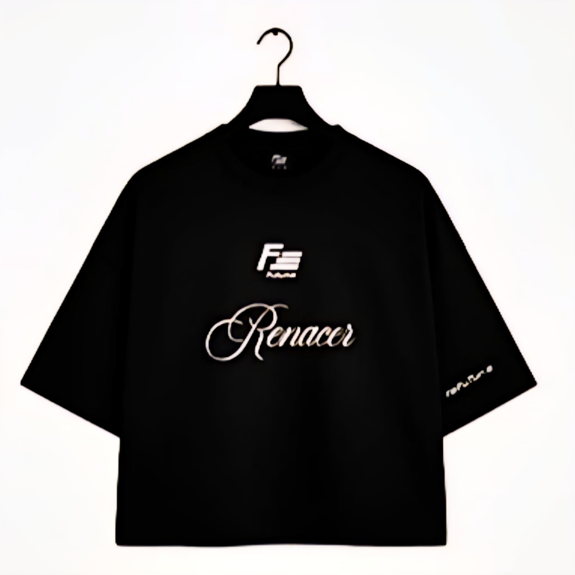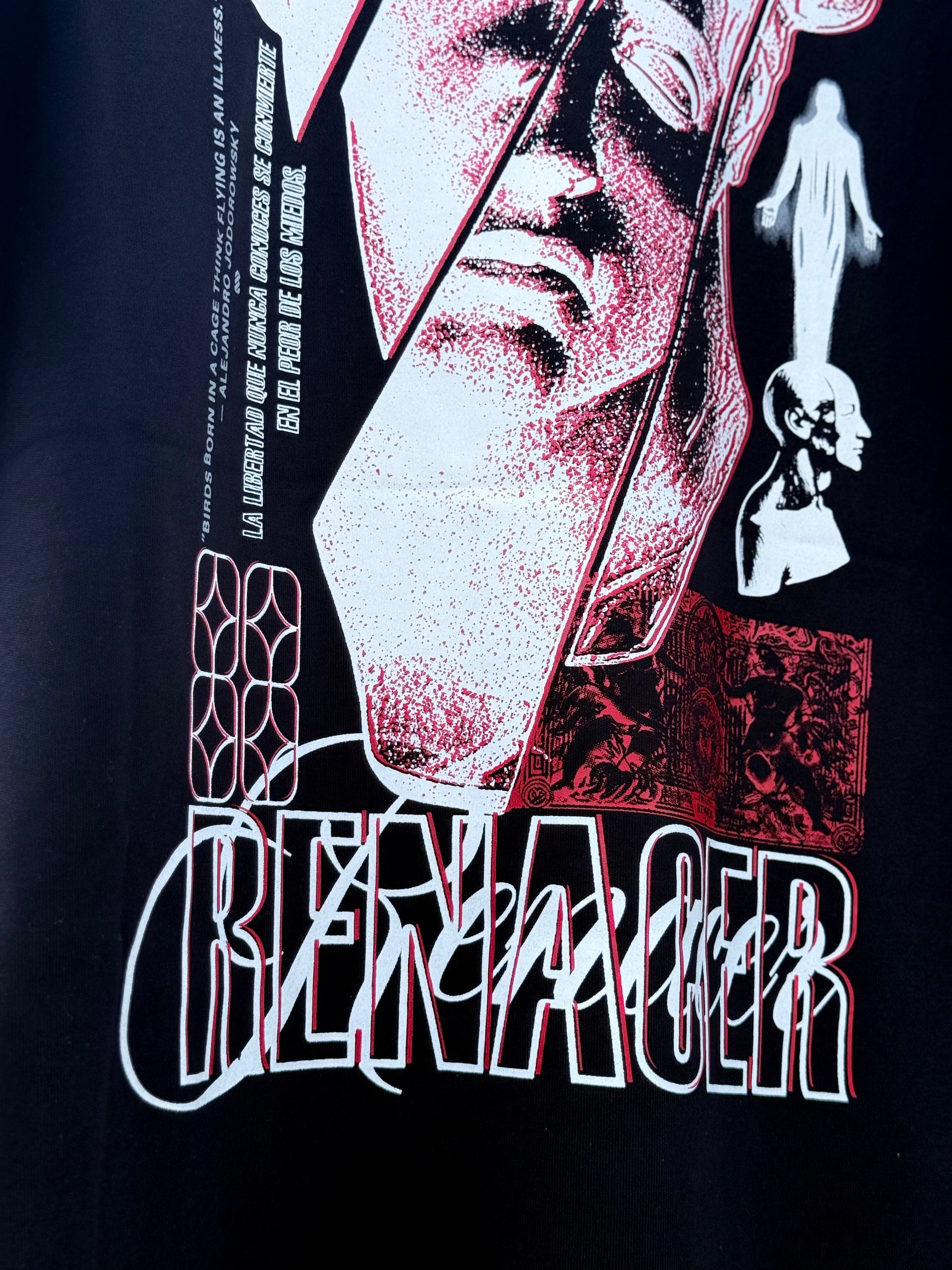 Camiseta Semi Oversize Negra RENACER Premium con corte exclusivo que tiene diseños exclusivos para esta colección, Confeccionada en algodón peruano 100% premium de 310 gramos, proporciona peso, estructura, frescura y durabilidad excepcional. El gramaje elevado garantiza calidez y suavidad manteniendo transpirabilidad óptima para uso versátil durante todo el año. Serigrafía profesional con densidad elevada asegura impresiones nítidas y resistentes al desgarre. Detalles constructivos premium incluyen marquilla PVC y etiqueta de talla tejida integrada. Diseño versátil que complementa perfectamente con otras piezas de la colección RENACER. Cada aspecto refleja estándares de confección de excelencia.